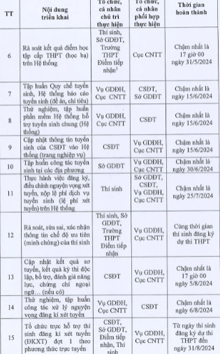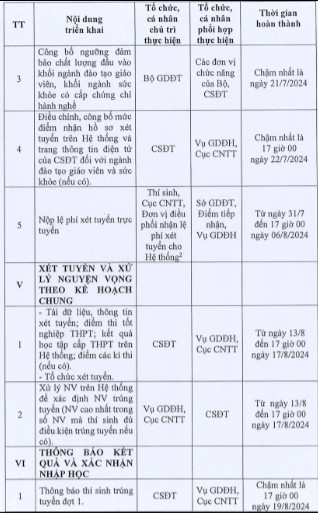 Đến hết ngày 30/6, tập huấn công tác tuyển sinh tại các địa phương. Chậm nhất đến ngày 25/7, thực hành việc đăng ký điều chỉnh nguyện vọng xét tuyển, nộp lệ phí xét tuyển trên hệ thống…